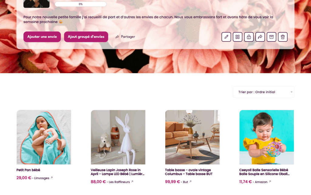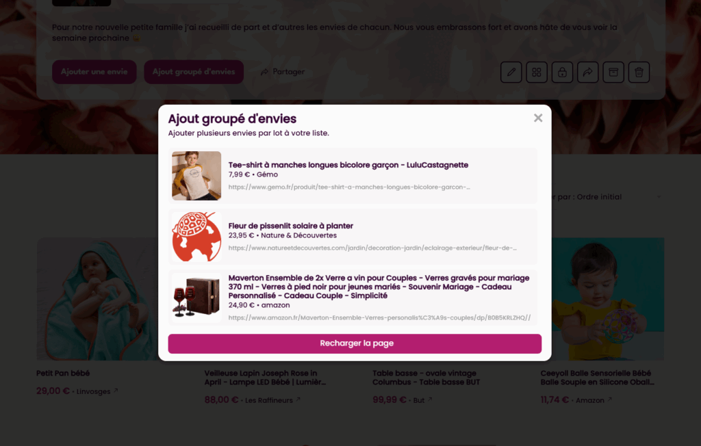 Vous avez repéré plusieurs coups de cœur ? Collez simplement leurs liens dans l’espace «Ajout groupé d’envies», et laissez-nous faire de la magie.